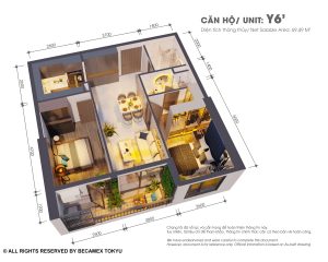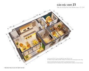 • Diện tích căn: 48.03 m² – 107.72 m² từ 1 PN đến 3 PN